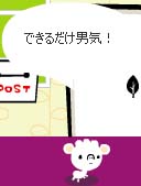 子十郎はさらに大きくなって、まぬけ顔になってしまった(汗) その顔では本当に独眼竜の右目になれるかどうかと、本気で心配してくる葵です(汗)。 喋られるになってから、やはり謎の発言を連発してる。 それになぜならその中で一番多く使われてるのはなんと「できるだけ」だ。 でもその一方、なんとなく自分にも他人にも厳しく接するあのしっかり者の右目らしい発言という気がしたけど。 ということで、今日の日記は「できるだけ祭」に決定します! できるだけ祭ですからね(笑) 昨日私は日記を書き忘れちゃったせいで、今日は新しい言葉を覚えさせられなかったことに怒ってるだろう。すみませんごめんなさい右目の旦那。 右目に万歳万歳!皆も右目を大事してくださいね(笑)もし目薬はわずか残るしかないという場合は、必ず右目の方からつけること。左目のことは気にしなくてもいいだから(本気かよ!) 野菜は体にいいです。だから良い子のみんなは絶対食べ残りしてはいけませんよ。そうしないとある野菜の鬼は絶対夜の夢に現れ、ダイヤモンド並みの硬いゴボウでたっぷりお仕置きしてあげるよ(怖) あの男気溢れる右目からの一言。男としては、何か何でも必ず男気で乗り越えちゃおうとするように心構えするべきでしょう。それこそ彼は最愛の奥さんの背中(?)を守り抜けるのです。 できるだけ命じゃなくで政宗様命だろうお前は。命かけても殿様の背中を護り切れなければなりませぬぞ。 はい、精一杯できるだけです。写真はもうこれきりしかないのですので今日はこの辺でご勘弁ください(汗) 小十郎:お前の「できるだけ」はその程度だけ!?もっと根性を見せてくれ!この意気地なし者!前に出ろ前だ! 葵:ゴボウだけは勘弁してよ!!(泣き逃げ)